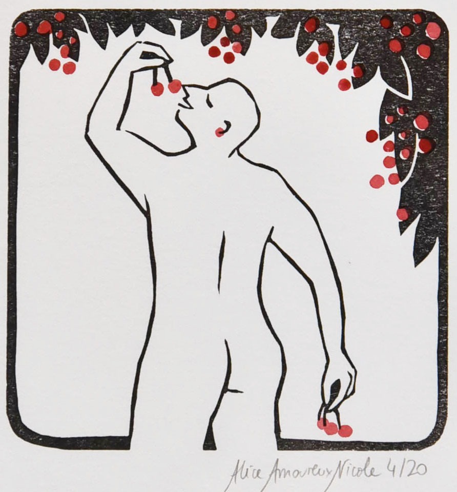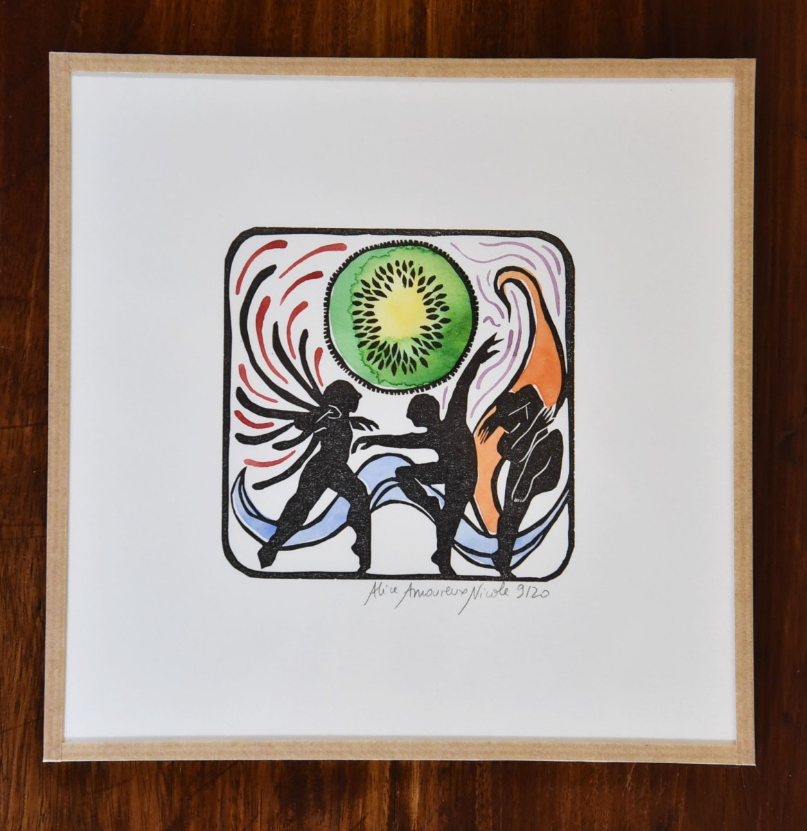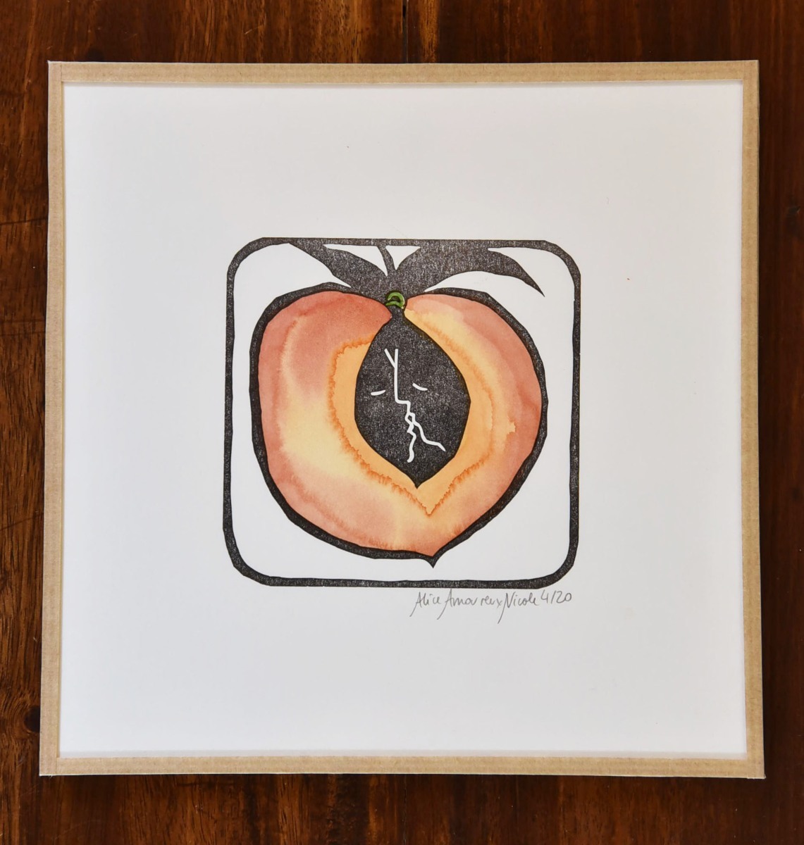 Voici une série de 6 gravures sur le thème du fruit. Chaque tableau est un duo entre l’aquarelle et la linogravure. Elle permet une reproduction en plusieurs exemplaires de gravure sur une aquarelle originale. Elles sont toutes numérotées et signées.
