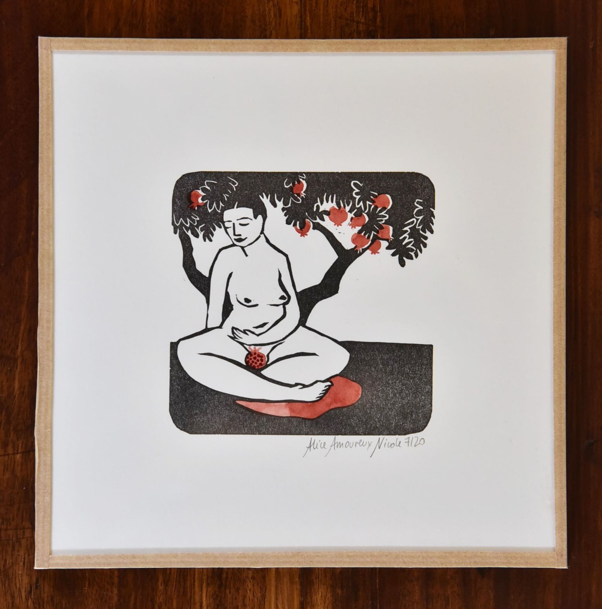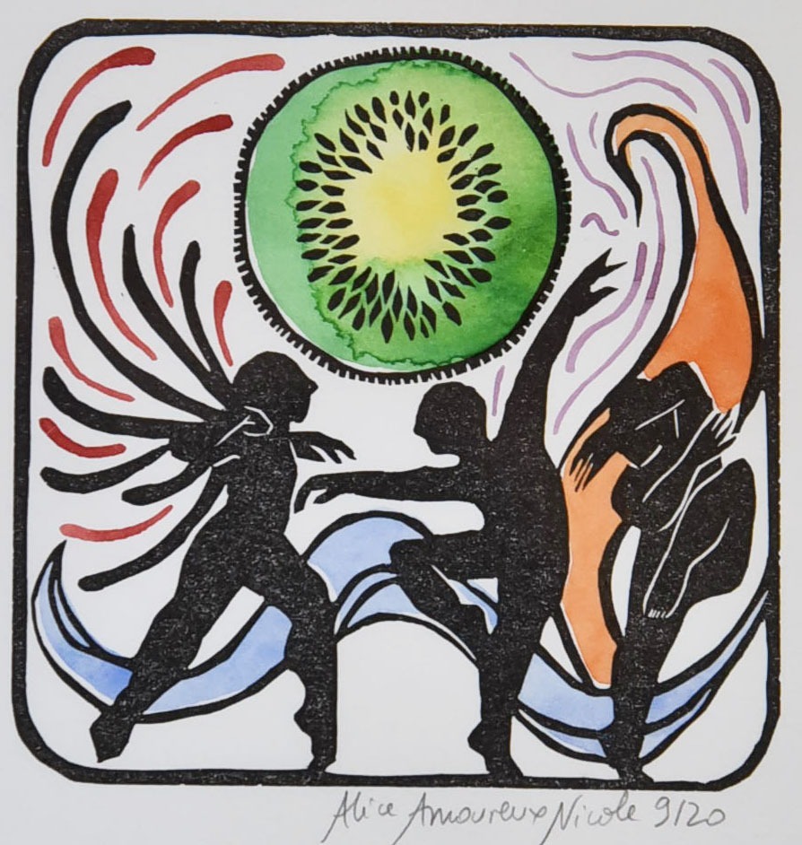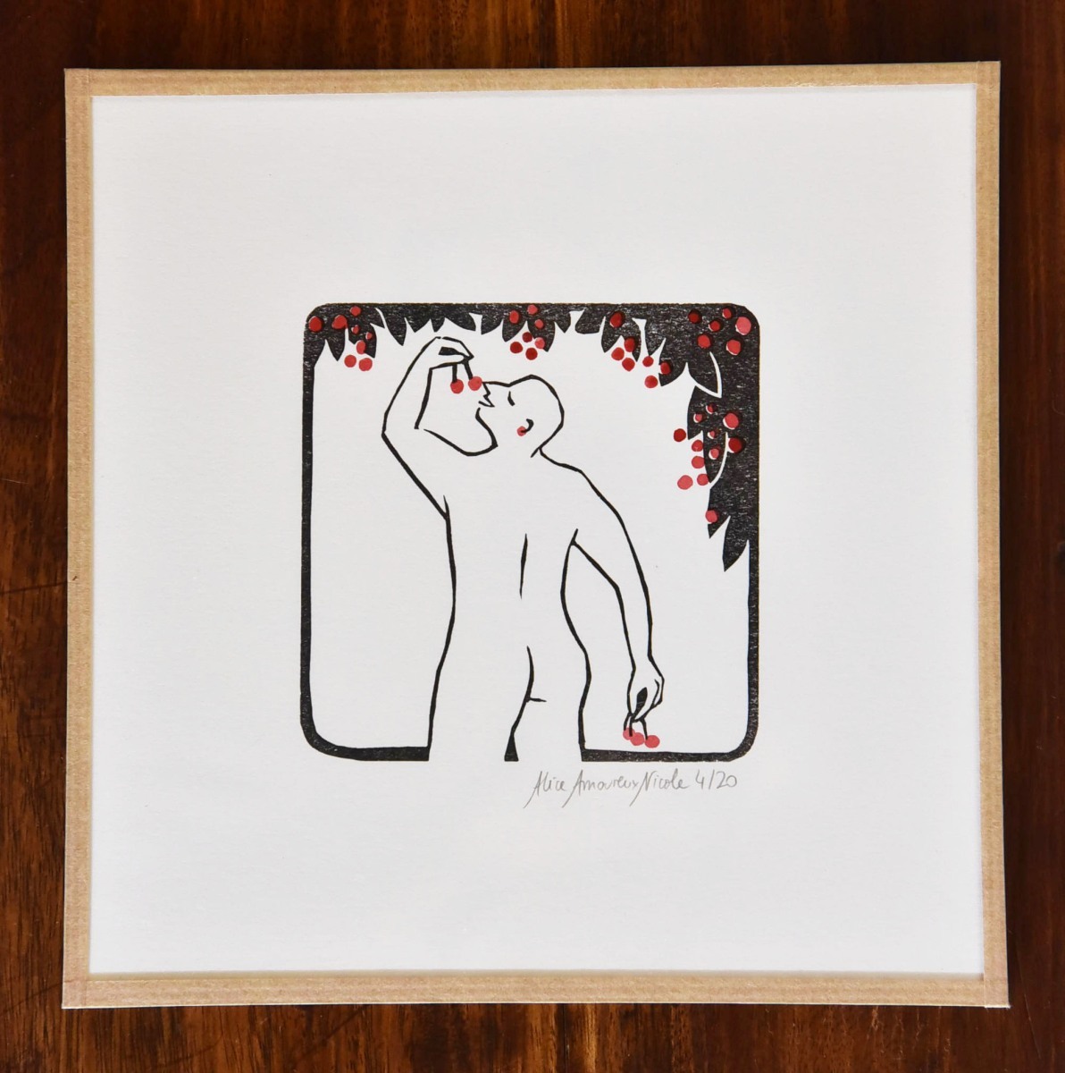 Voici une série de 6 gravures sur le thème du fruit. Chaque tableau est un duo entre l’aquarelle et la linogravure. Elle permet une reproduction en plusieurs exemplaires de gravure sur une aquarelle originale. Elles sont toutes numérotées et signées.